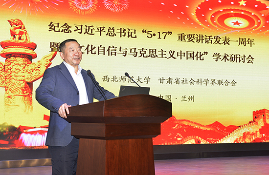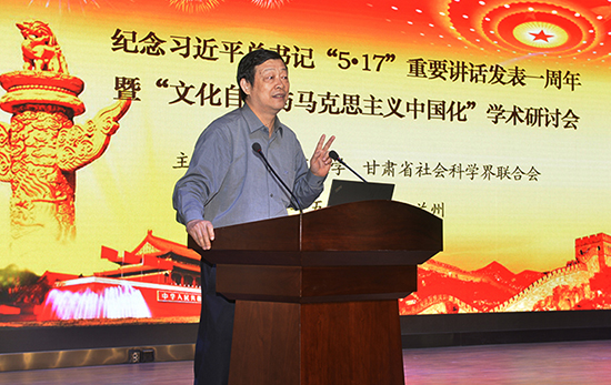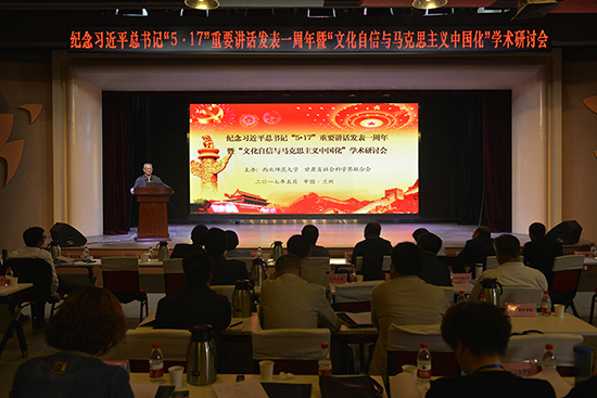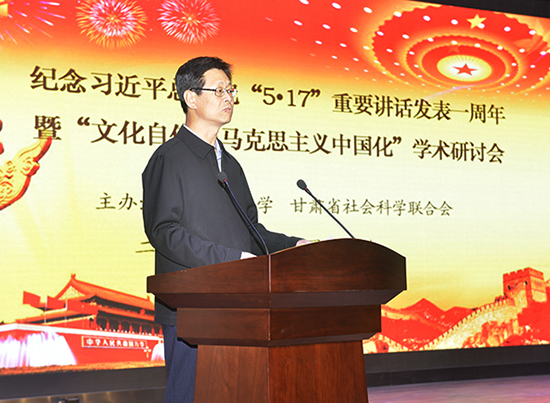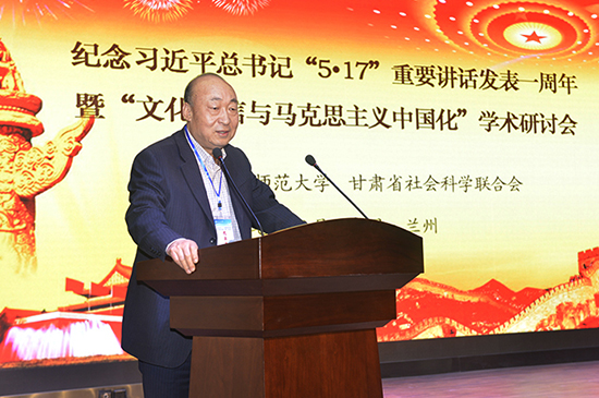 5月13日,时值习近平总书记全国哲学社会科学工作座谈会重要讲话发表一周年之际,由德赢vwin体育官网登录和甘肃省社会科学界联合会共同举办的“纪念习近平总书记‘ 5•17 ’重要讲话发表一周年暨‘文化自信与马克思主义中国化’学术研讨会”在德赢官网学生发展中心召开。来自省内外高等学校和科研院所的专家围绕“文化自信与马克思主义中国化”这一主题,就推动构建中国特色哲学社会科学、巩固马克思主义指导地位、促进我省社科理论工作繁荣发展交流研讨。