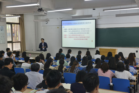 调研组随机选取了德赢官网德赢vwin体育官网登录青年教师史小宁讲授的“马克思主义基本原理”,全程听完了《社会历史观的基本问题——社会存在与社会意识的关系问题》一节的课程内容。课后,刘贵芹与史小宁进行了深入交流。他说,这是一堂高质量的大学生思想政治课,课堂讲授概念准确,逻辑清晰,功底扎实,体现了“问题导向、学生参与、联系实际、讲解透彻”四个特点。希望今后能够进一步针对学生的专业特点,紧贴学生思想实际,丰富案例教学的使用,创新授课方式,提升课堂魅力,为青年大学生的健康成长提供精神滋养。