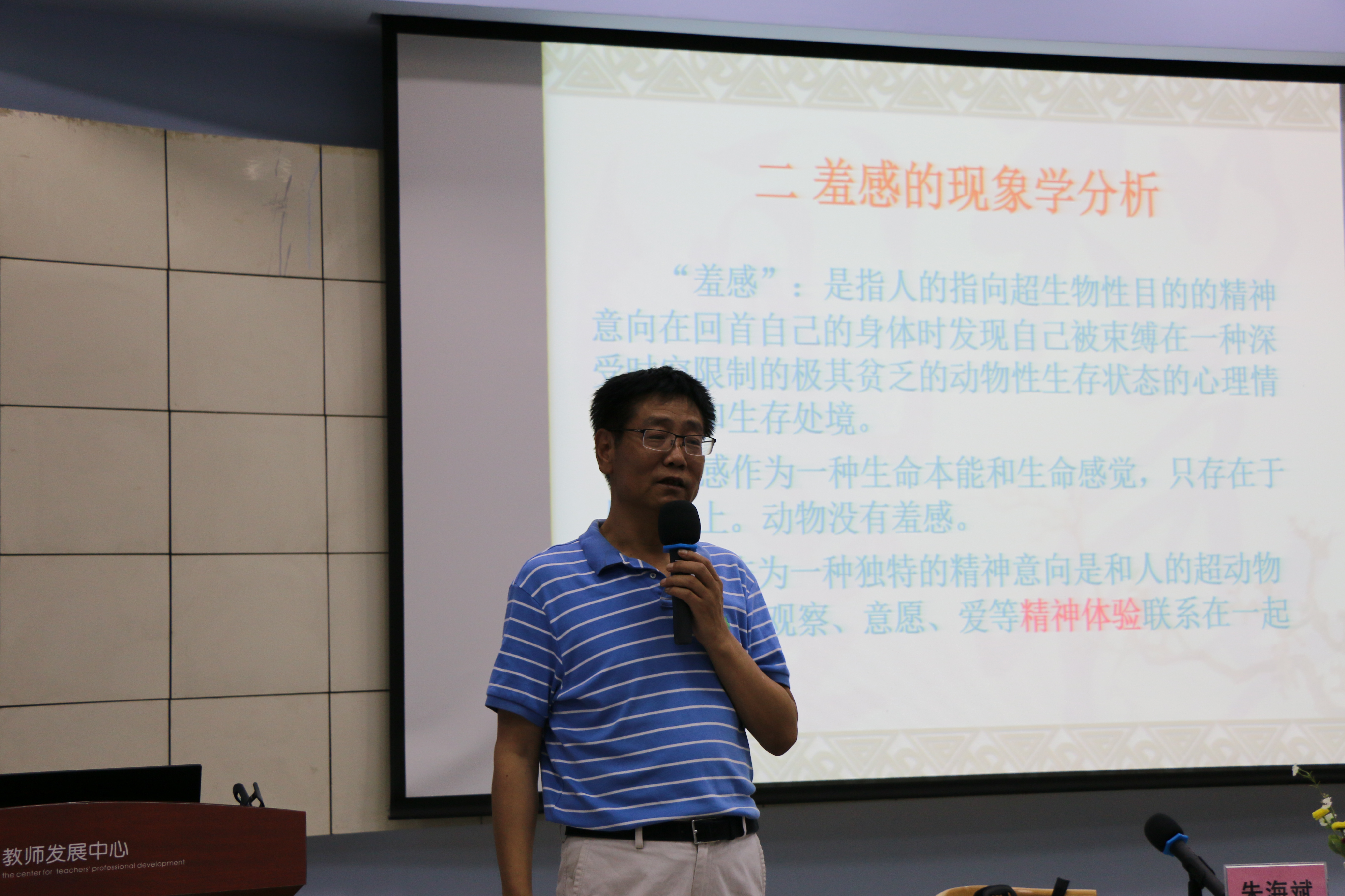 李朝东教授以现象学三巨头之一马克斯·舍勒思想为基础,以现代学的三个命题出发,详细阐述了关于“怨恨“与”羞感“的现象学分析。李朝东教授首先以社会历史划分讲起,他认为在西方并没有以“文艺复兴”为标志的近代社会划分,而是称之为“学科分化期”,学科分化使各学科从哲学中分离,导致了近现代科学的迅速发展,现代人的信仰由上帝逐渐转变为科学指导下的理性,所以尼采发出了“上帝已死”的感叹,因为信仰的转变使人的内心由“爱“转化为”怨恨“。随后李朝东教授讲,怨恨是一种生命本能和生命感觉,是只存在于人身上的独特精神意向,在基督教文化中,亚当、夏娃正是吃了知识树的果实,产生了知识和羞感被赶出了伊甸园。而现代社会的失序在于人的心灵失序,如何恢复羞感是解决社会失序的主要途径。由爱到怨恨产生的报复心理有2个本质,一是“隐忍”,二是“以牙还牙“。最后李朝东教授指出现代道德的4个基本特征:一是人对人的不信任感;二是一切人在道德上平等;三是普遍人性;四是实用价值凌驾于生命价值之上。
