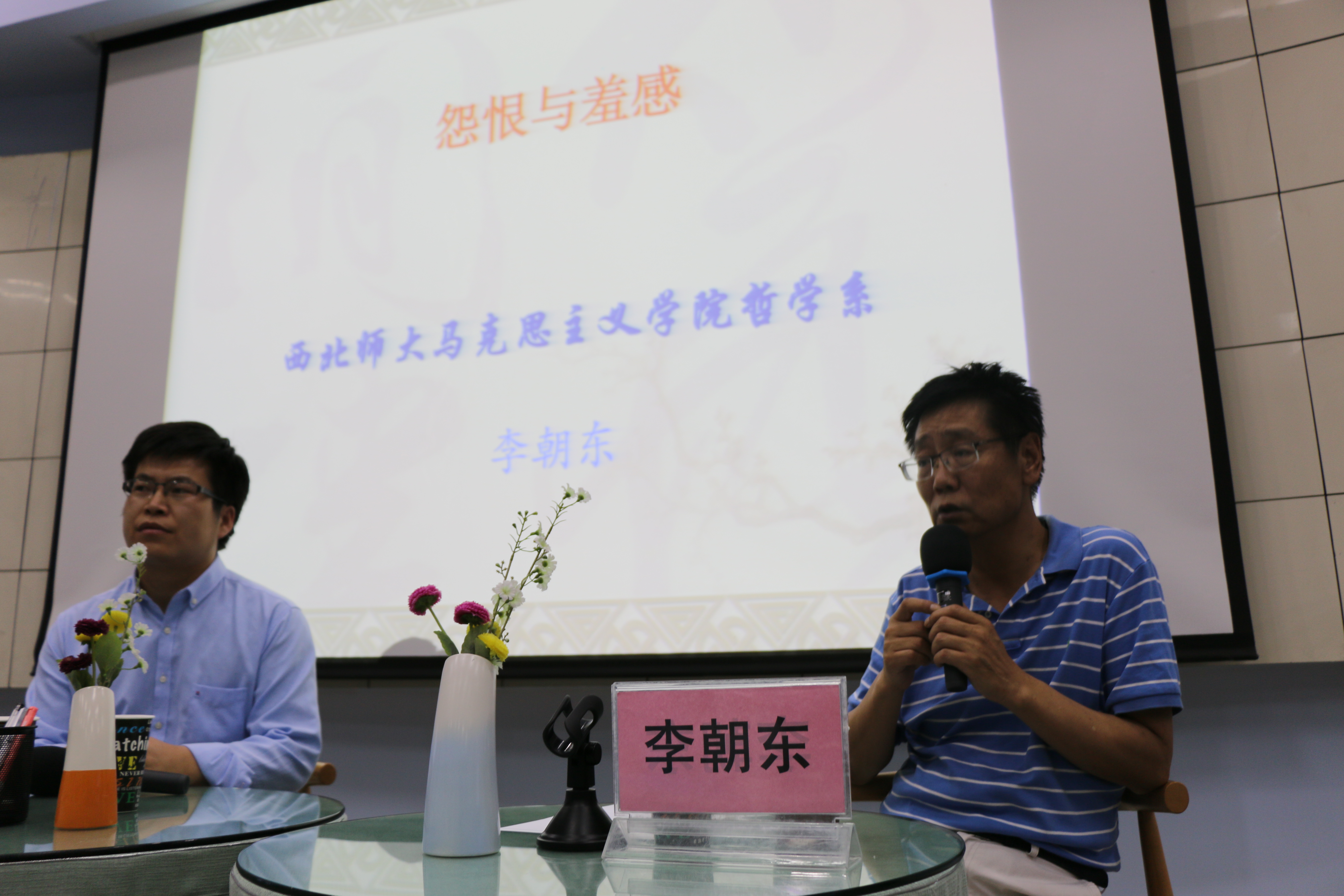 2017年6月29日晚,由德赢vwin体育官网登录哲学系、中和集团、社科处与教师发展中心联合主办的“哲学沙龙——中和论道”第二十九期在德赢vwin体育官网登录教师发展中心如约而至。本期主题是“怨恨与羞感”,由德赢官网副校长、德赢vwin体育官网登录博士生导师李朝东教授主讲,德赢官网德赢vwin体育官网登录朱海斌博士主持,中和集团洪涛董事长、文学院院长韩高年教授、文学院党委阎岩书记、科技处处长莫尊礼教授、德赢vwin体育官网登录党委符得团书记、甘肃省委党校张堡研究员与德赢vwin体育官网登录教师、学生以及其他哲学爱好者共百余人聆听了报告。