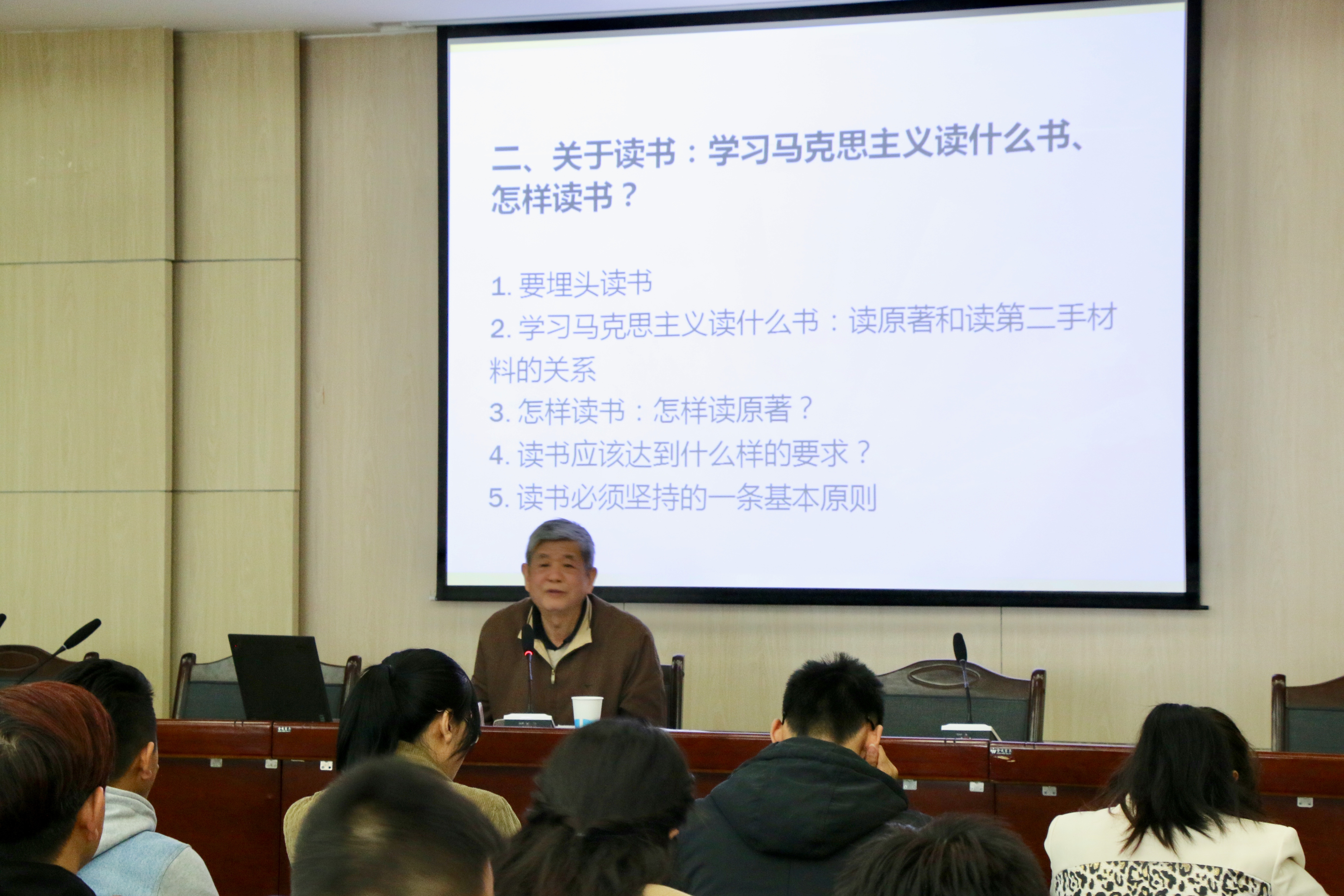 10月11日上午,德赢vwin体育官网登录马克思主义经典著作读书会启动仪式举行。教育部高等学校社会科学发展研究中心原主任田心铭教授出席活动并作了题为《读原著、学原文、悟原理》的专题报告。西北师大校友、华侨大学哲学与社会发展学院周世兴教授和德赢vwin体育官网登录师生140余人参加活动。