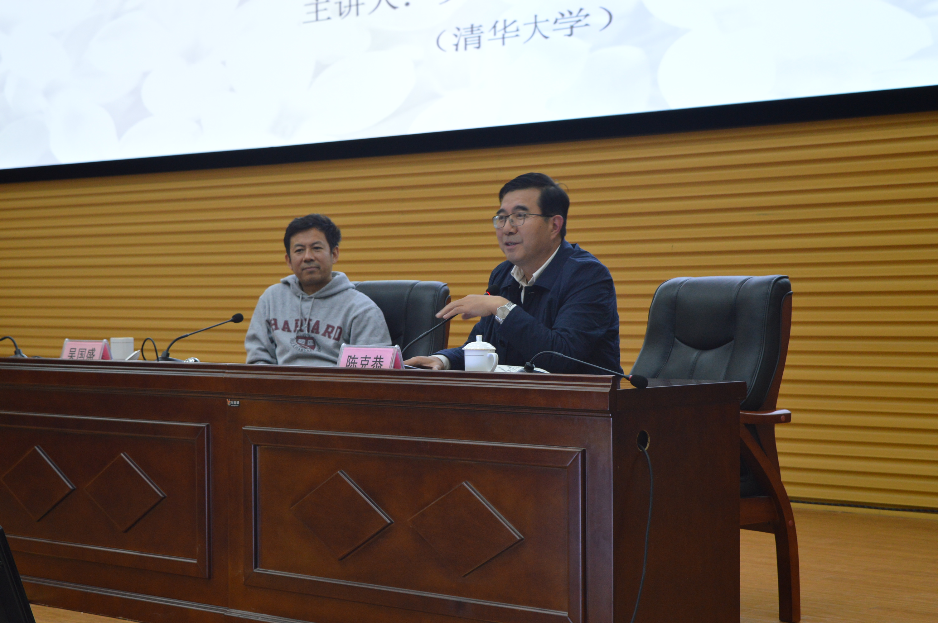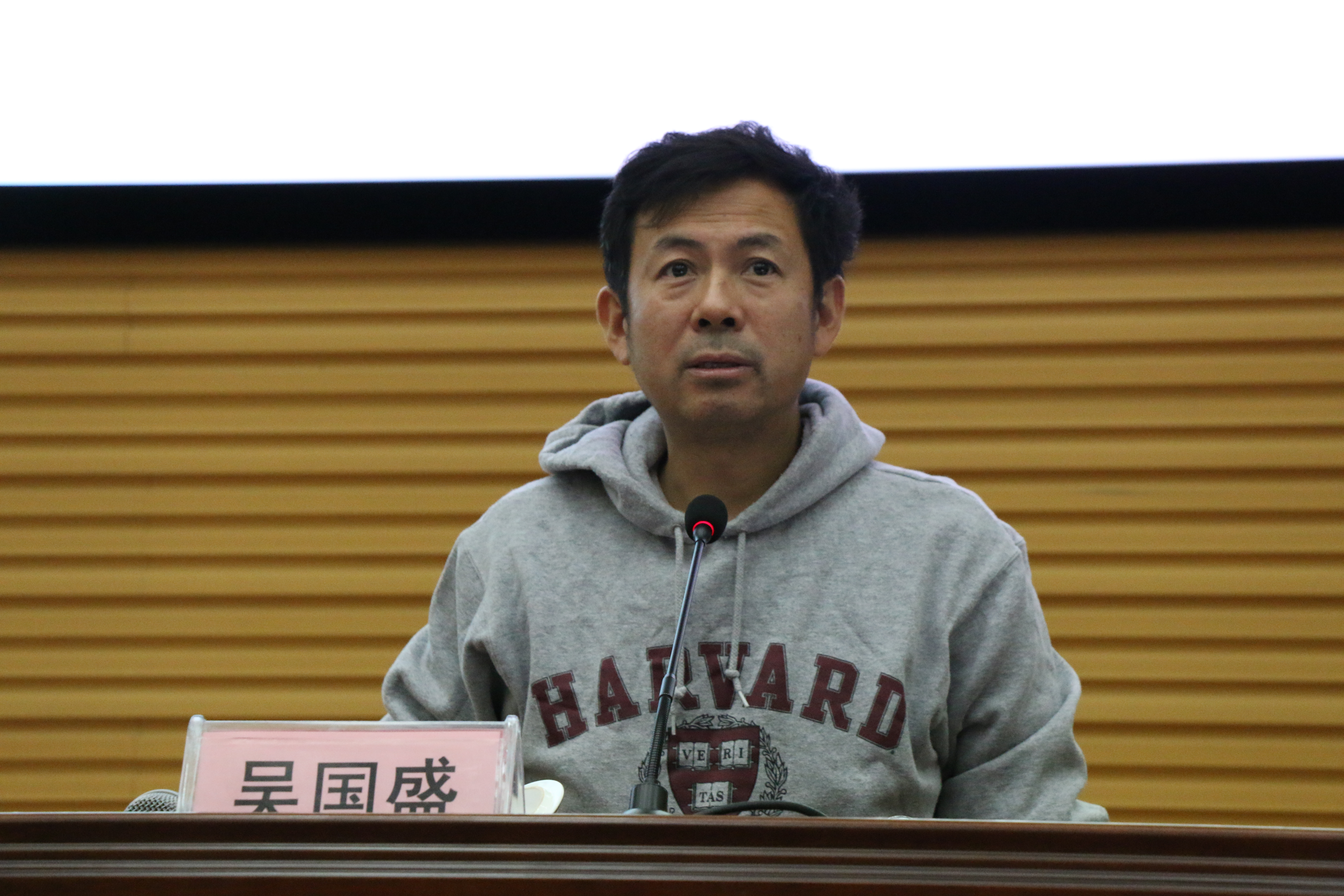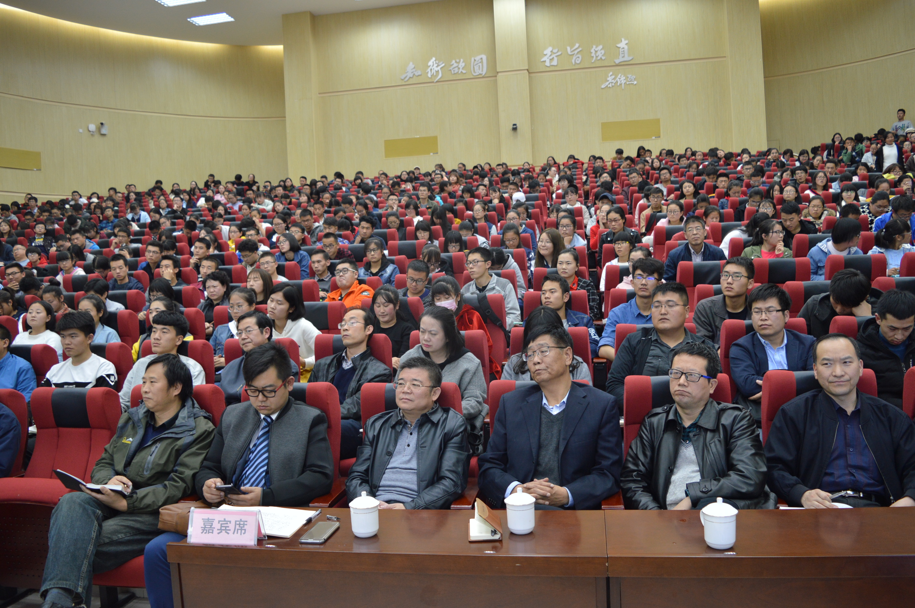2017年10月19日下午,由德赢vwin体育官网登录哲学系、中和集团、社科处与教师发展中心联合主办的“哲学沙龙——中和论道”第三十二期在德赢vwin体育官网登录毅然报告厅举行。本期主题为“科学的人文起源”,由清华大学吴国盛教授主讲,德赢vwin体育官网登录党委书记陈克恭研究员主持。德赢官网副校长李朝东教授、中和集团洪涛董事长、科技处处长莫尊理教授、数学与统计学院院长马如云教授、副院长张贵仓教授、德赢vwin体育官网登录党委符得团书记、德赢vwin体育官网登录姜宗强副院长、音乐学院副院长李莉教授、师大附中孙小春副校长、哲学系贾克防主任以及各位教师、学生爱好者共六百余人参加活动。