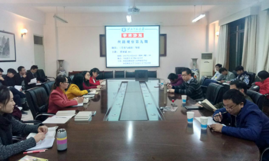 10月26日晚,西北边疆政治与治理研究中心与德赢vwin体育官网登录团委联合主办的“丝路观察”学术沙龙第九期在德赢vwin体育官网登录307会议室召开,本期的主题是:“《学术与政治》导读”。由曹亚斌博士主讲,闪兰靖博士、袁维杰博士、张雪雁博士及学生参与讨论。