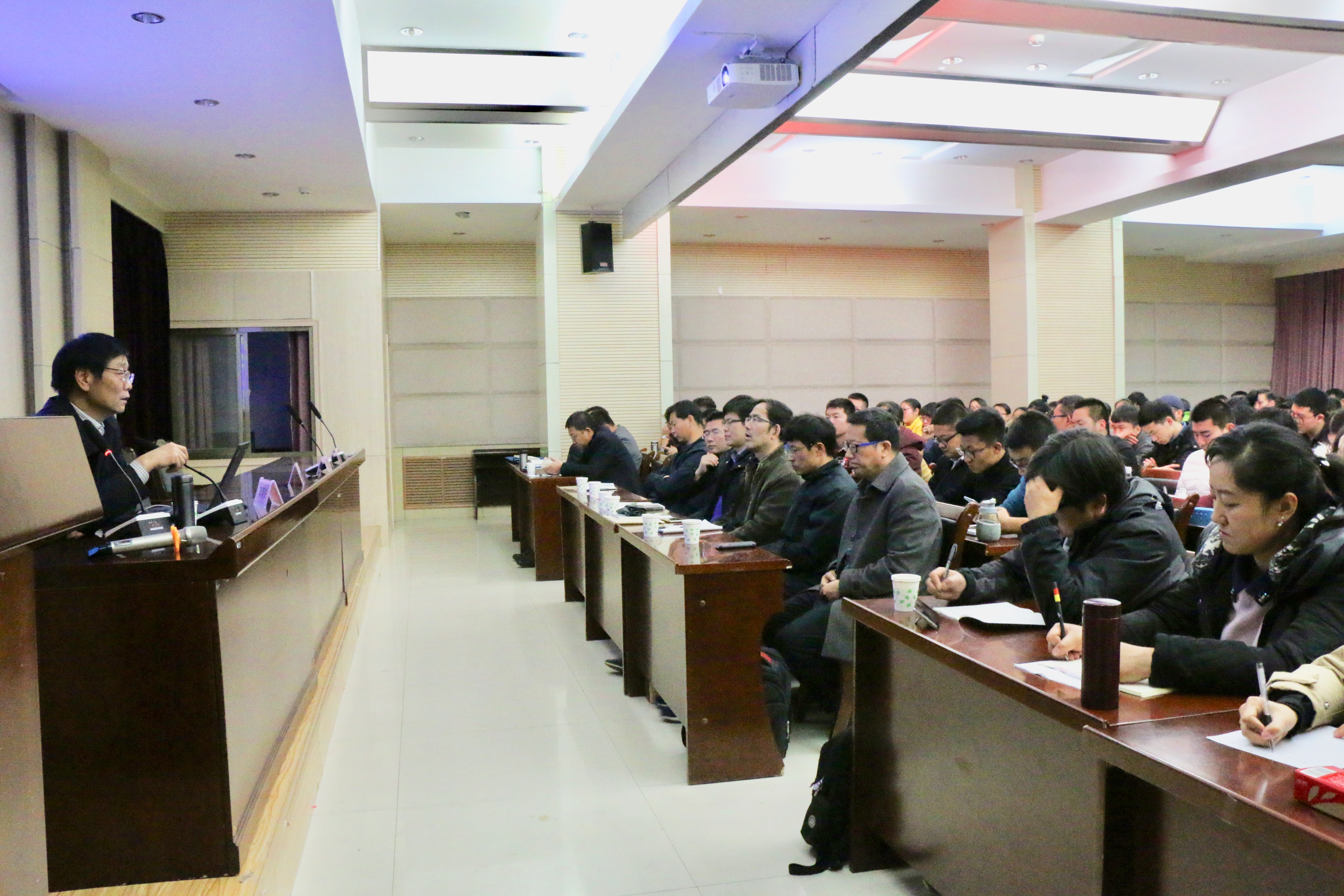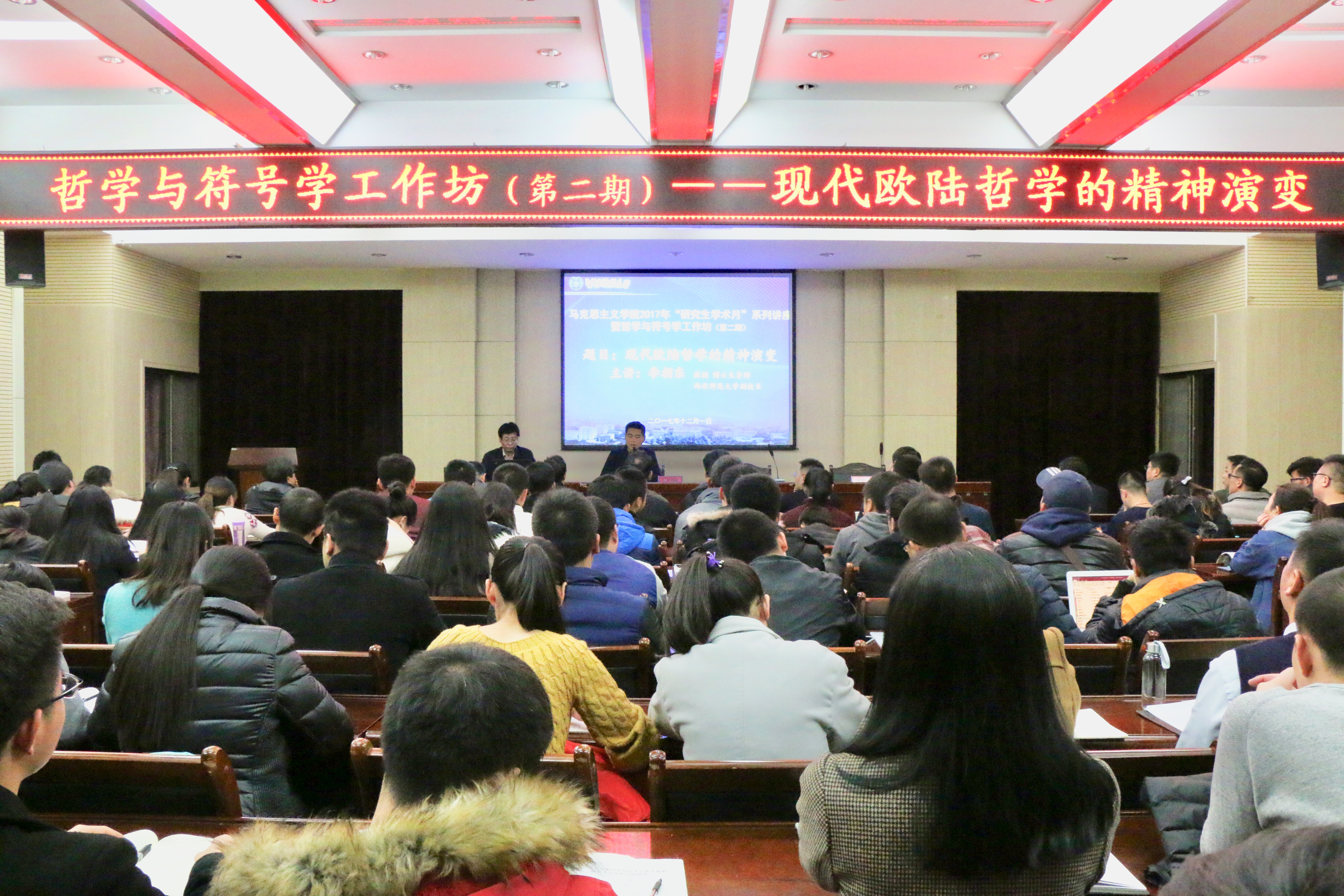 2017年12月1日晚,由德赢vwin体育官网登录哲学系与外国语学院符号学研究中心共同联合主办的“哲学与符号学工作坊”第二期在德赢vwin体育官网登录四楼报告厅举行。德赢vwin体育官网登录副校长李朝东教授作“现代欧陆哲学的精神演变”学术报告,哲学系主任贾克防副教授主持,哲学系副教授师庭雄、外国语学院副教授蒋世强进行评议。研究生院熊华军副院长、德赢vwin体育官网登录姜宗强副院长以及其他来自西北师大和安宁区各高校的教师、学生等,共百余人参加了讲座。