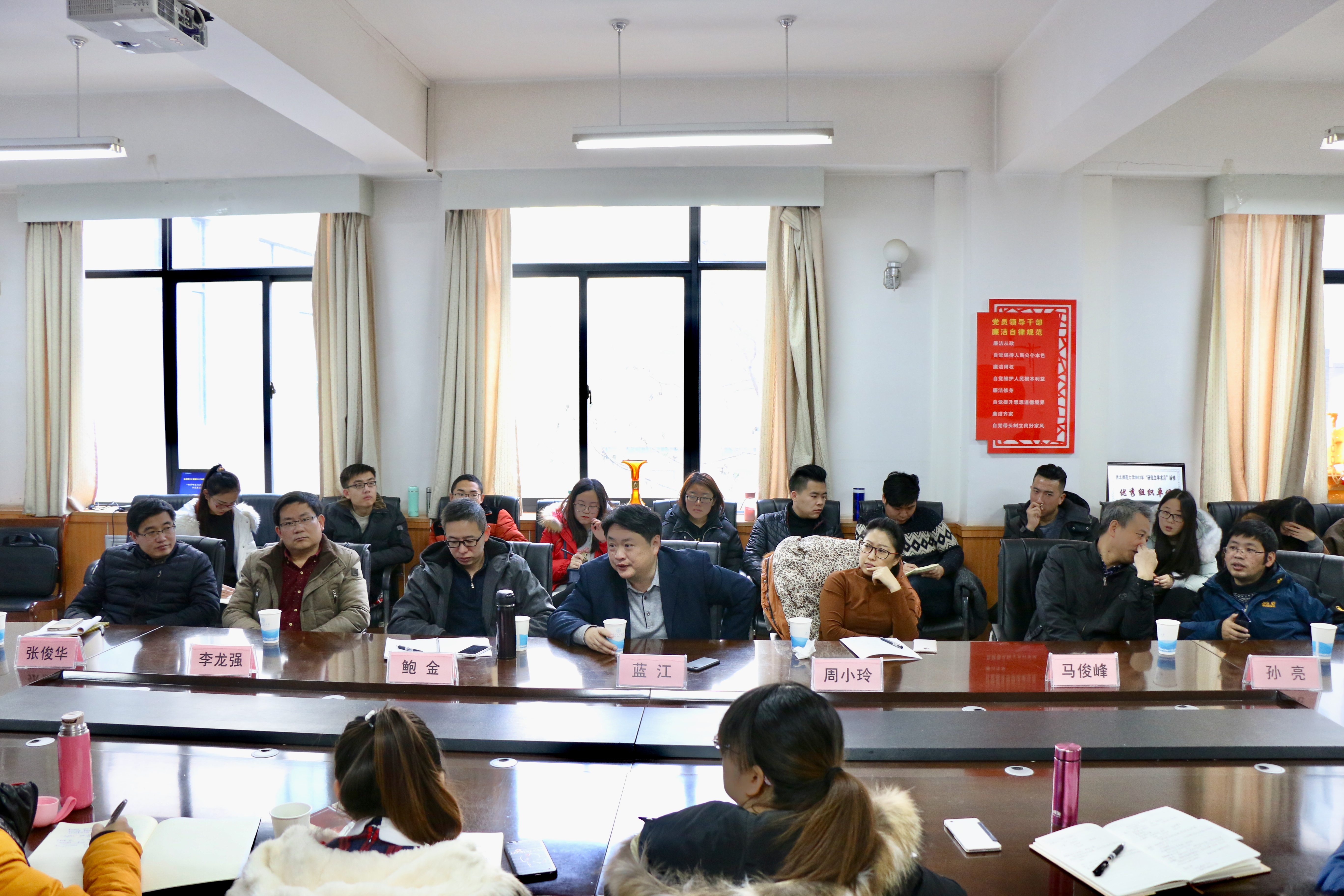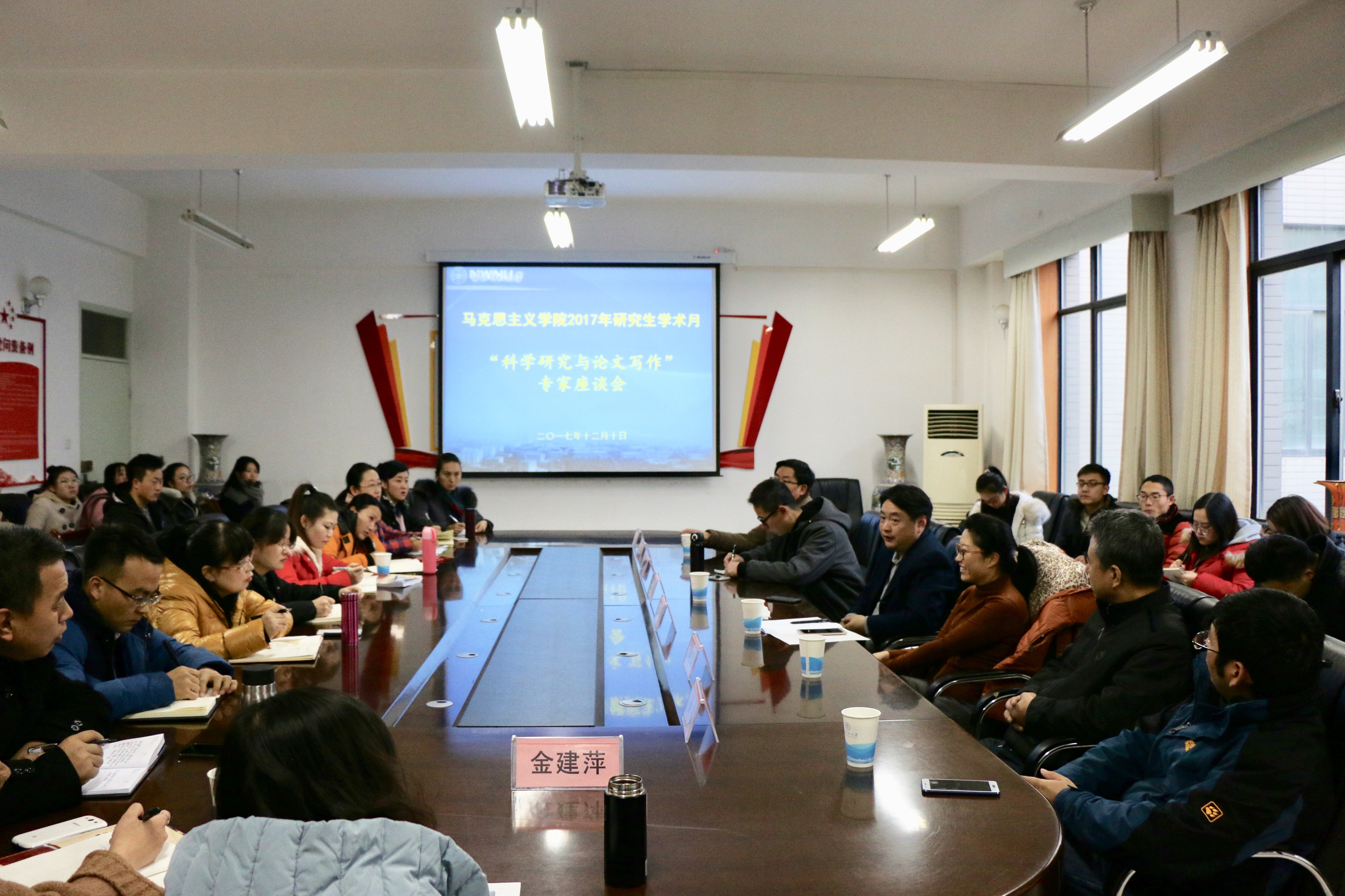 2017年12月10日上午8:30,德赢vwin体育官网登录人文讲堂第二十期暨研究生学术月系列活动:“科学研究与论文写作”专家座谈会在学院三楼会议室举行。南京大学蓝江教授、华东师范大学孙亮教授、商洛学院李龙强教授、上海交通大学鲍金副教授、《社会科学》杂志社编辑周小玲、《思想政治教育研究》杂志社编辑张俊华出席了会议,德赢官网博硕研究生40余人参加了活动,本次活动由德赢官网马俊峰教授主持。