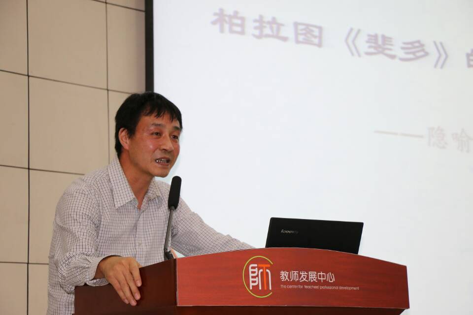 2018年9月11日晚,由德赢vwin体育官网登录哲学系、中和集团、社科处与教师发展中心联合主办的“哲学沙龙—中和论道”第四十三期在德赢vwin体育官网登录教师发展中心如期举行。本期主题为:“柏拉图《斐多》的听与说:隐喻的摆渡者”。由兰州大学哲学院郭吉军教授主讲,德赢vwin体育官网登录哲学系师庭雄副教授主持。德赢vwin体育官网登录副校长李朝东教授、中和集团洪涛董事长、甘肃省委党校孔敏教授、外语系赵登明教授、哲学系副主任胡好副教授、王金元教授、朱海斌博士、思政系牛正兰教授及在场师生共百余名哲学爱好者一起参加了此次学术活动。