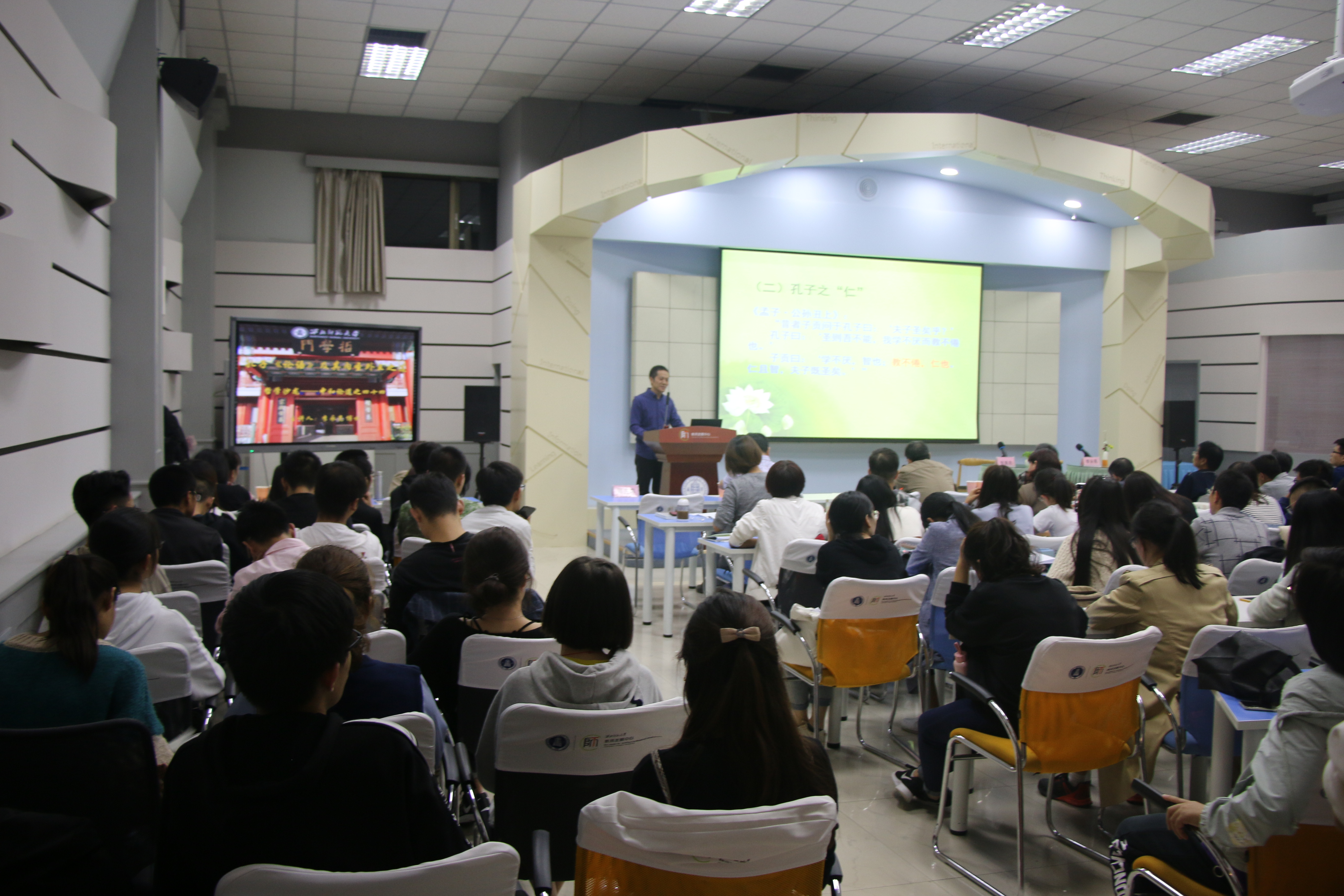 2018年9月25日晚,由德赢vwin体育官网登录哲学系、中和集团、社科处与教师发展中心联合主办的“哲学沙龙——中和论道”第四十四期在德赢vwin体育官网登录教师发展中心如期举行。本期主题为“孔子《论语》及其内圣外王之道”。由西北师大德赢vwin体育官网登录哲学系李永亮博士主讲,张美宏博士主持。德赢vwin体育官网登录副校长李朝东教授、中和集团洪涛董事长、国际文化交流学院杨同军副院长、音乐学院李莉副院长、哲学系师庭雄副教授、吴琼副教授等在场师生共百余名哲学爱好者一起参加了此次学术活动。