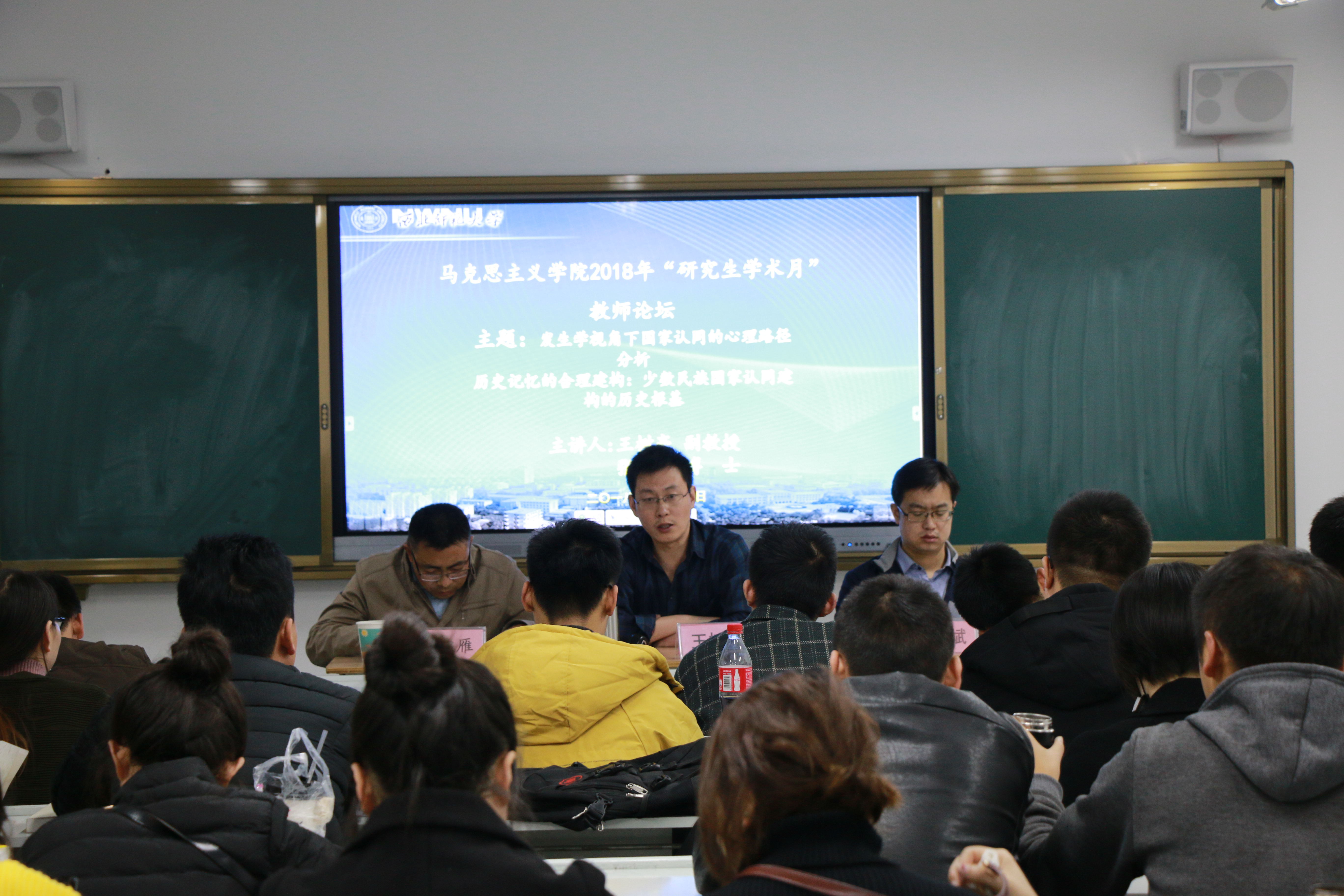 在答疑互动环节,两位老师就“如何更好地培育民族地区国家认同”、“国家爱国主义的教育”、“国家认同和社会主义核心价值观的联系”等问题和学生们展开了激烈的讨论。