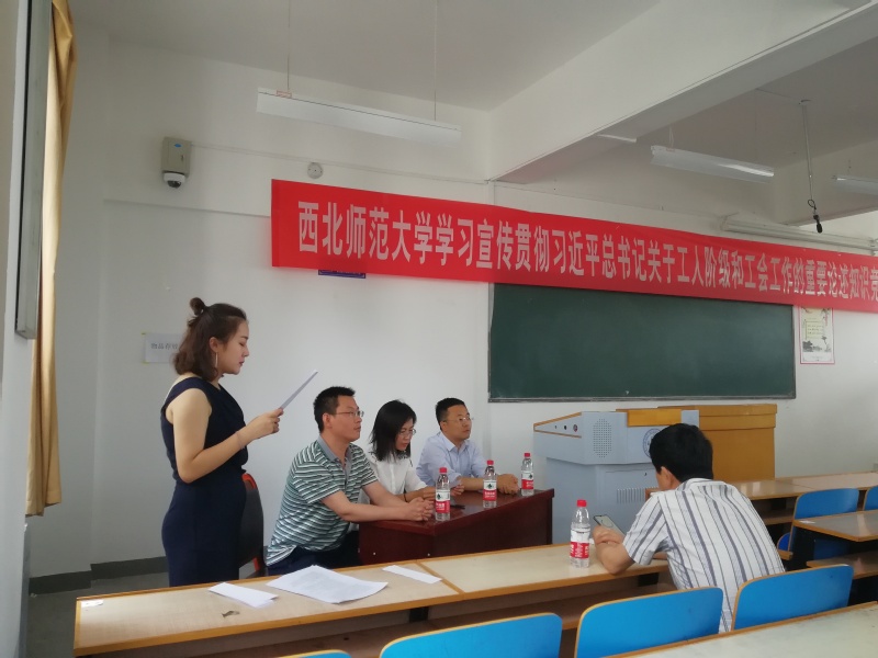 2019年7月6日,学院工会主席马科中带队,学院教师赵秋静、王树亮、董伟伟三位老师代表学院参加了学校工会组织的“学习宣传贯彻习近平总书记关于工人阶级和工会工作的重要论述知识竞赛”。