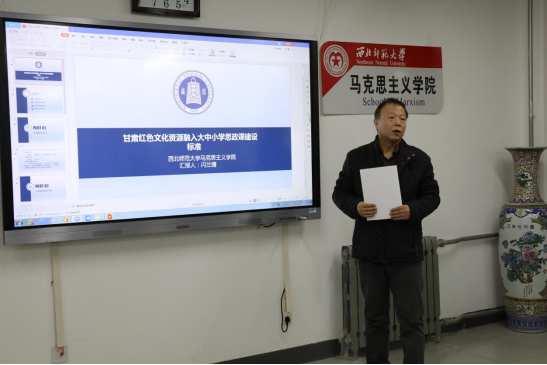 学院闪兰靖副教授首先就团队情况、设计思路、基本框架、任务分解等方面向专家做了汇报;袁维杰副教授就红色文化资源融入甘肃大学思政课程建设标准;漆调兰博士就红色文化资源融入甘肃中学思政课程简建设标准;魏彩苹教授就红色文化资源融入甘肃小学思政课程建设标准分别做了主题发言。