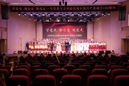 为引领青年师生进一步学党史、悟思想、办实事、开新局,围绕学史明理、学史增信、学史崇德、学史力行,营造浓厚的学习氛围。5月10日晚,西北师大德赢vwin体育官网登录主办的“学党史、强信念、跟党走”——庆祝中国共产党成立100周年五四主题晚会在音乐厅举行。党委副书记刘玉泉、副校长邓小娟出席,部分机关部门负责人、德赢vwin体育官网登录领导班子成员、师生代表约300人现场观看晚会。