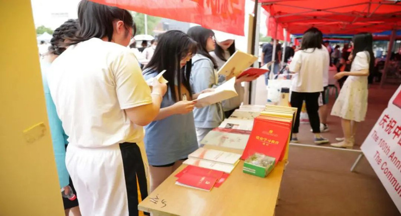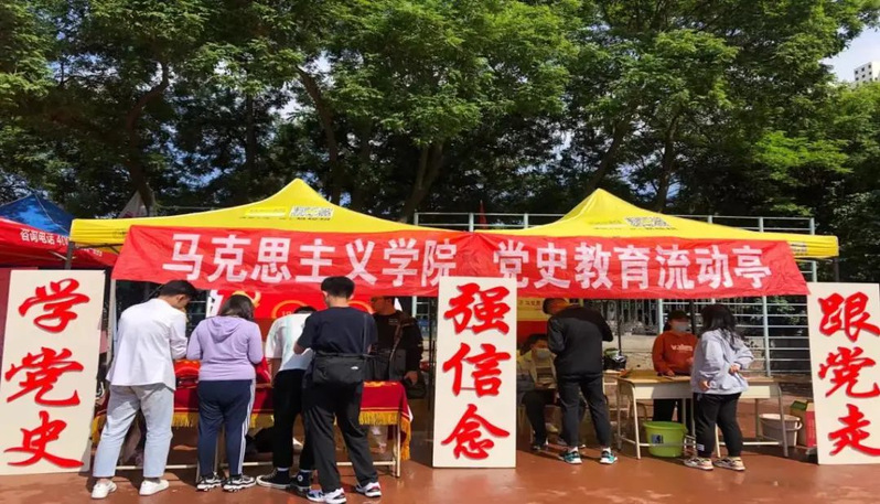 为深入开展丰富多样、独具特色的党史学习教育,在运动会期间,德赢vwin体育官网登录团委面向全体师生于西操场东南角设立党史学习教育读书流动亭。党员做先锋,团员紧跟随,引导广大青年学生读原文、学原著、悟原理,切实做到“学史明理、学史增信、学史崇德、学史力行”,推动党史学习教育走深走实、入脑入心。