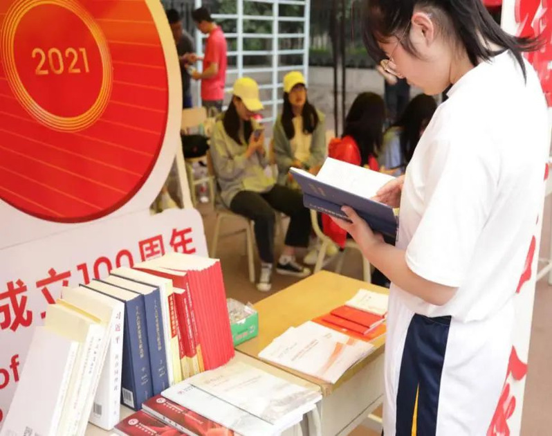流动亭设置简洁大方,书桌上面摆放着《论中国共产党历史》《习近平新时代中国特色社会主义思想学习问答》《毛泽东邓小平江泽民胡锦涛关于中国共产党历史论述摘编》《中国共产党简史》等党史学习教育必读书籍,供师生借阅学习,力求将党史学习教育融入到日常学习生活中去。