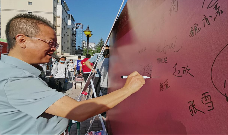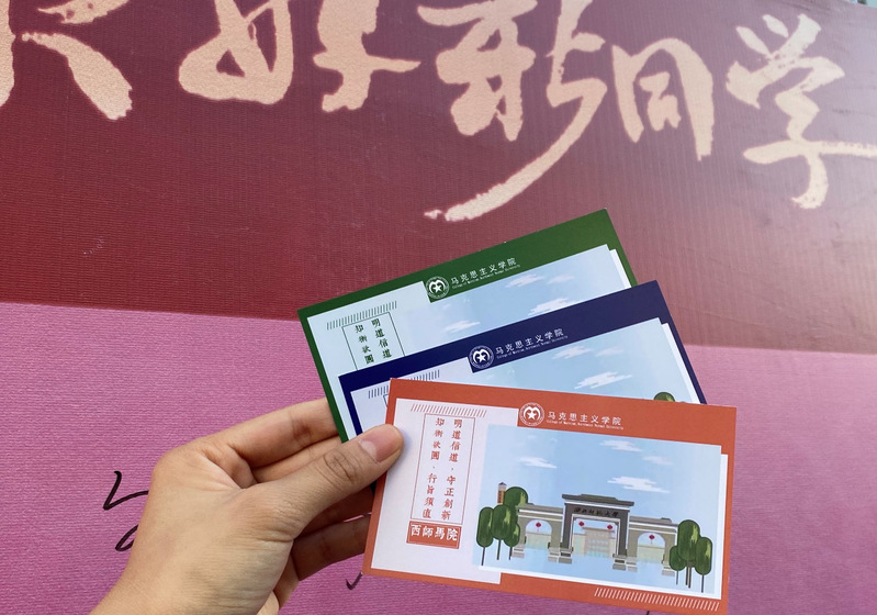 新生到达报到点填报个人信息后,在志愿者的引导下进入核酸检测环节,随后回到报到点领取学院专门为他们准备好的精心制作的明信片和精美的信封。学院专设了签名墙与梦想信箱,将德赢官网满满的信念感传达给每一位志同道合的新人们,用笔尖记录下每一个理想,用心灵承载真挚的马院之魂,让生活以真切的存在注满仪式感!