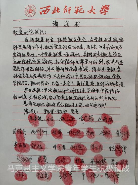 德赢vwin体育官网登录青年党员第一时间请战,按下鲜红指印,许下青春抗疫的誓言!