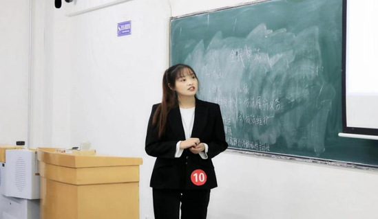 院级复赛由实习话感想、教学设计、模拟授课三个环节构成,总分100分,其中实习话感想10分,教学设计20分,模拟授课(包含多媒体课件制作20分、授课表现40分、板书10分)70分。11名入围院级复赛的同学紧密结合专业理论特色,运用不同形式展现课堂教授的实景,课程内容详实,教学设计合理,语言表达生动流畅,多媒体运用恰到好处,充分展现德赢官网师范生优秀的综合素养。