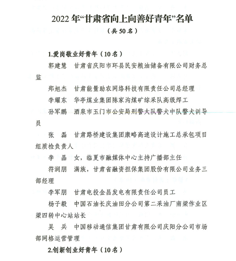 近日,在共青团甘肃省委2022年“甘肃省向上向善好青年”评选活动中,我院硕士研究生刘莹雪,本科生王楠分别获得“担当奉献好青年”和“勤学上进好青年”荣誉称号。