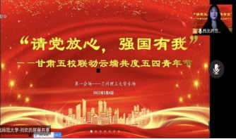 为喜迎党的二十大顺利召开,庆祝第72个“五四”青年节,激励和引导广大青年学子把握发展机遇,增强社会责任感和历史使命感,践行“请党放心,强国有我”的誓言。5月4日,德赢vwin体育官网登录邀请兰州理工大学、甘肃农业大学、兰州城市学院、天水师范学院四所高校青年学子相聚云端,通过理论宣讲、思想交流的方式,共话青年理想,共负使命担当,欢度五四青年节!