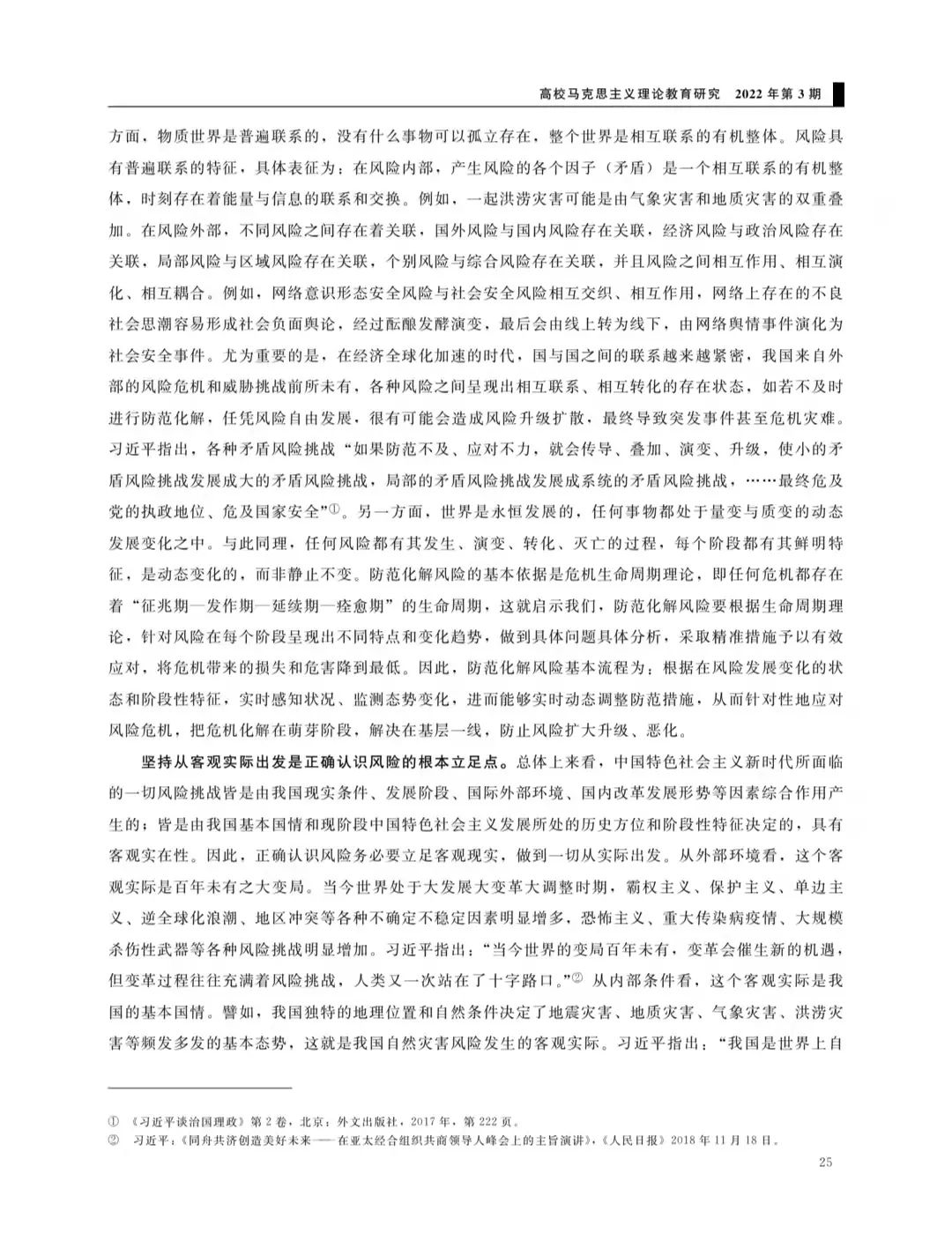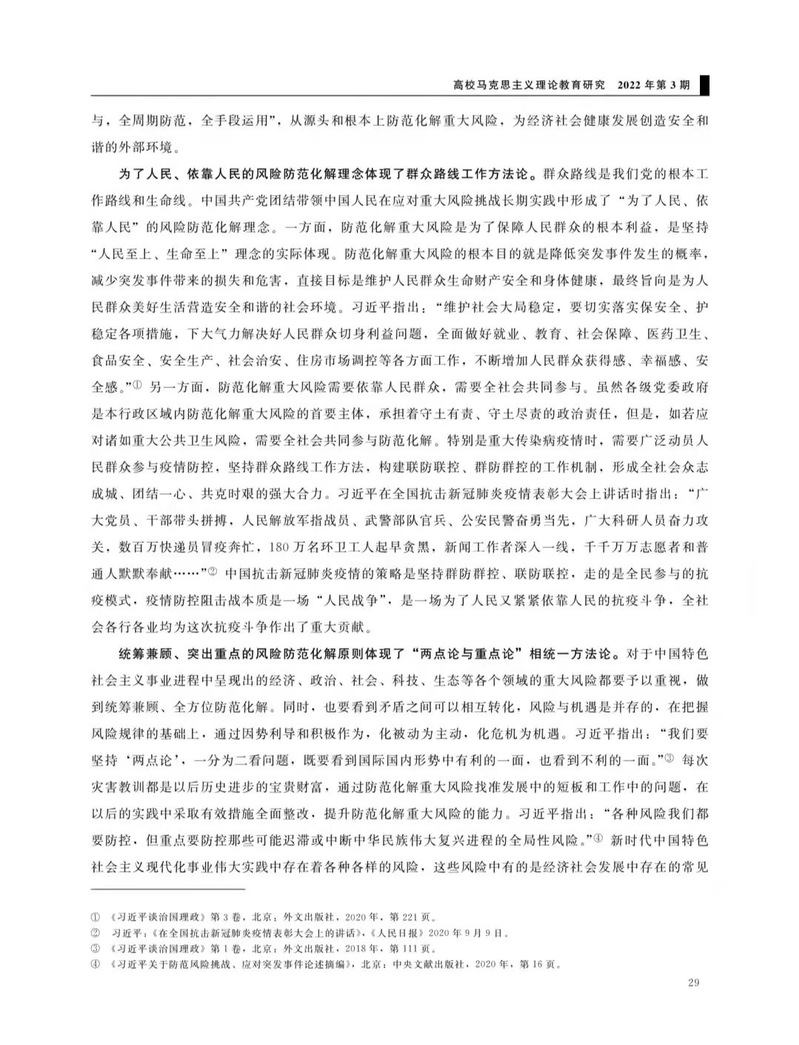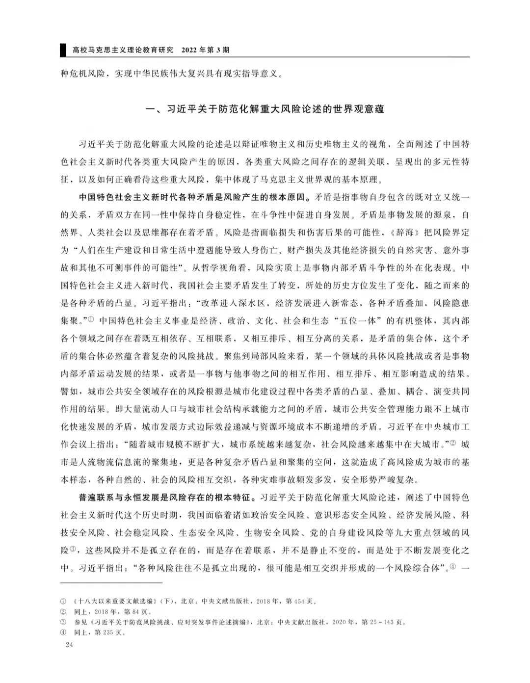 今日推文来源:《高校马克思主义理论教育研究》2022年第3期发表德赢vwin体育官网登录马俊峰教授文章《习近平关于防范化解重大风险重要论述的哲学意蕴》。