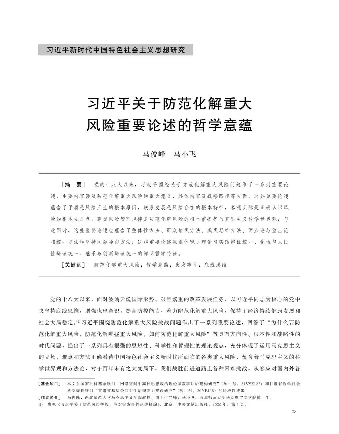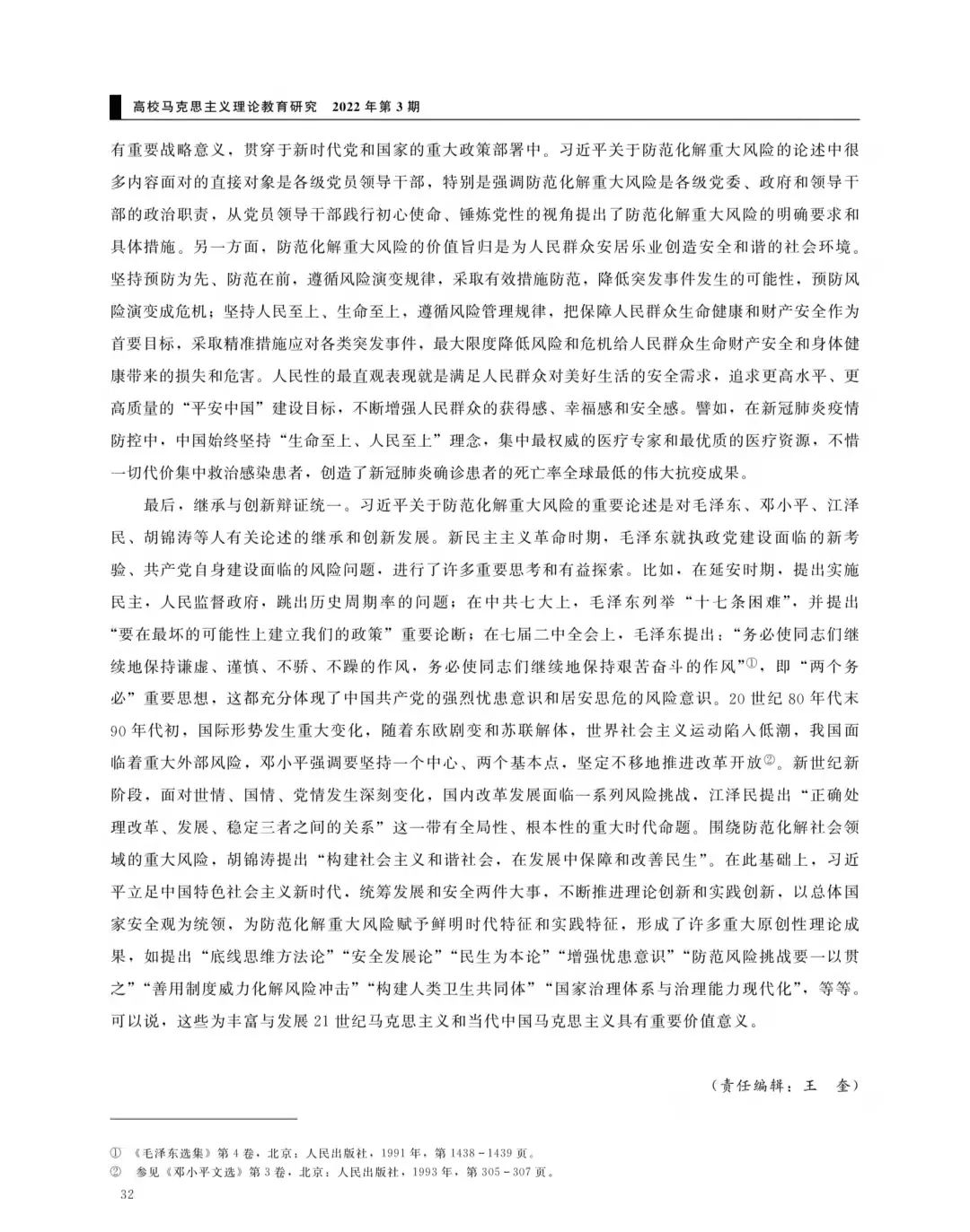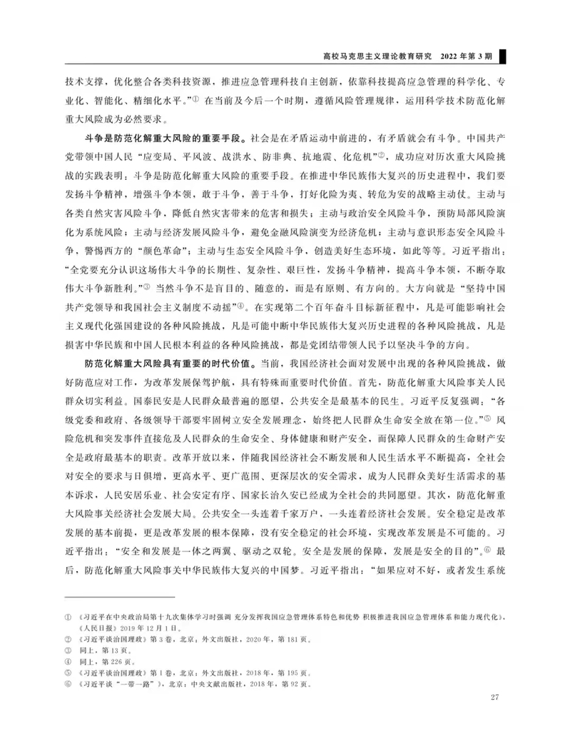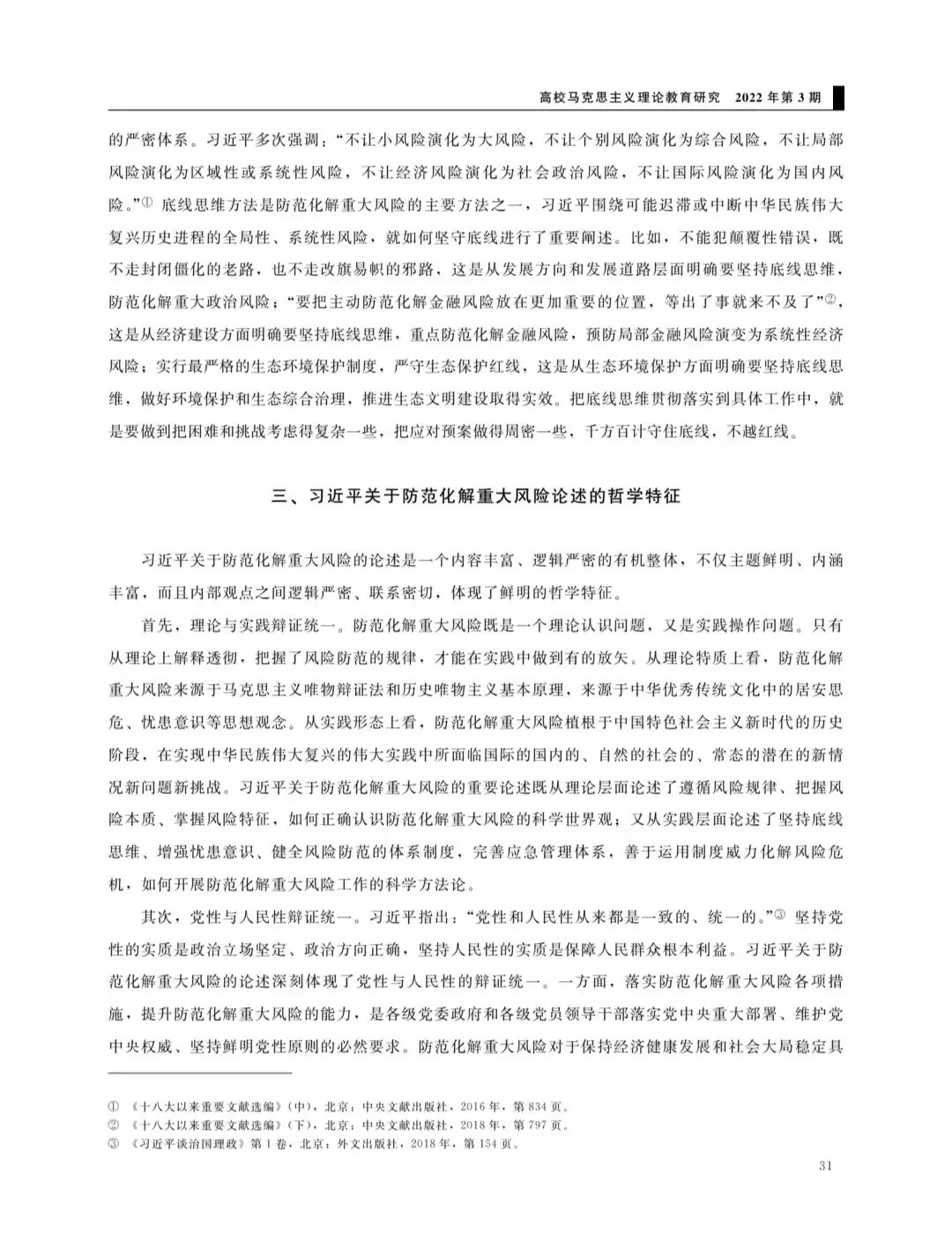 今日推文来源:《高校马克思主义理论教育研究》2022年第3期发表德赢vwin体育官网登录马俊峰教授文章《习近平关于防范化解重大风险重要论述的哲学意蕴》。