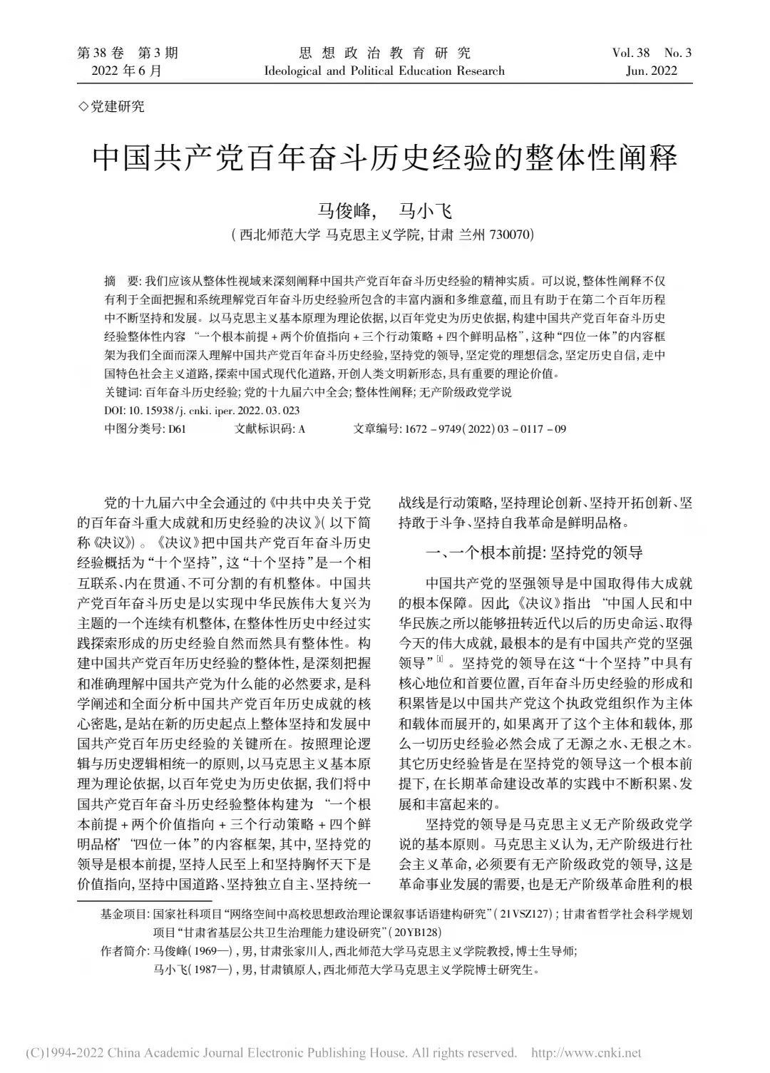 《思想政治教育研究》2022年第3期发表德赢vwin体育官网登录马俊峰教授文章《中国共产党百年奋斗历史经验的整体性阐释》。