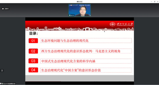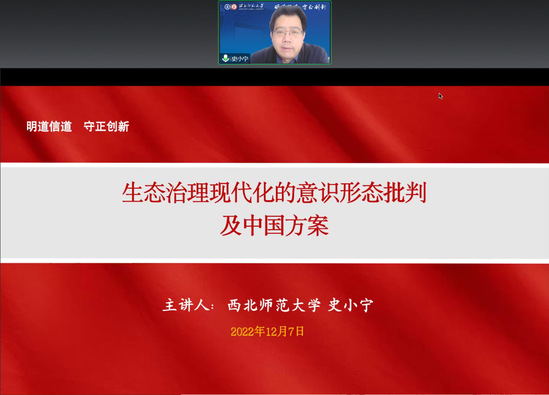 12月7日下午,德赢vwin体育官网登录研究生学术月第二期“博导论坛”通过腾讯会议线上举办。史小宁教授作了题为《生态治理现代化的意识形态批判及中国方案》的学术报告。报告由德赢vwin体育官网登录周方副教授主持,部分青年教师及百余名硕博士研究生踊跃参加。
