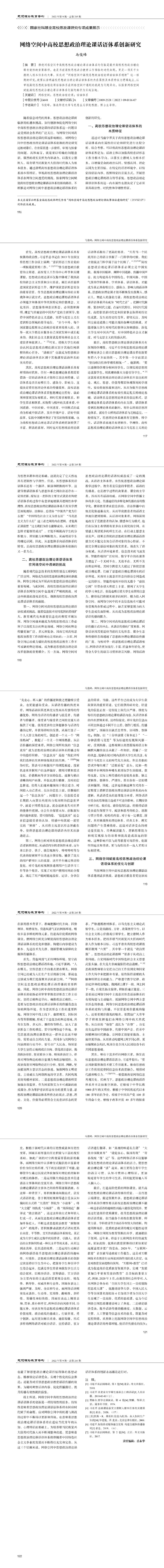 《思想理论教育导刊》2022年第9期·总第285期德赢vwin体育官网登录马俊峰教授文章《网络空间中高校思想政治理论课话语体系创新研究》。