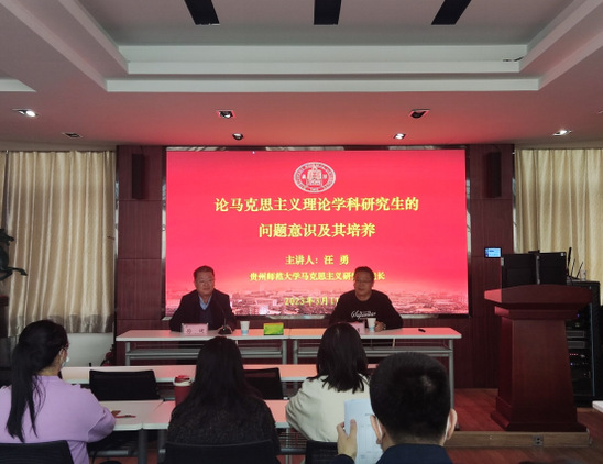 3月10日晚,应德赢vwin体育官网登录邀请,贵州师范大学马克思主义研究院院长、博士生导师汪勇教授在学院6楼学术报告厅为德赢官网师生作了题为《论马克思主义理论学科研究生的问题意识及其培养》的学术讲座,此次讲座由学院副院长、博士生导师孙健教授主持。