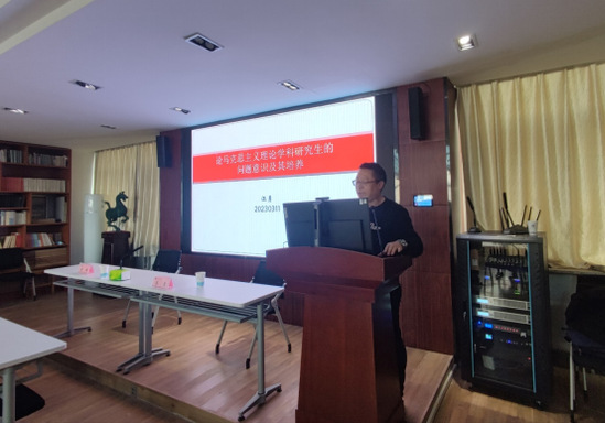 汪勇教授围绕马克思主义理论学科研究生的问题意识及其培养这一主题,从近些年马理论学科及其研究生的基本情况出发,以学生的科研选题为例,从马克思主义理论学科研究生的问题的重要性及其意义进行了精彩而又详细的讲解。汪教授指出,马克思理论学科研究生问题意识存在的问题主要体现在发现问题的意识不强、分析问题的意识不强、解决问题思考不全面等方面,并对存在的这些问题提出了相应的对策建议,拓展了研究生的研究视野,有助于提高研究生的科学研究能力。
