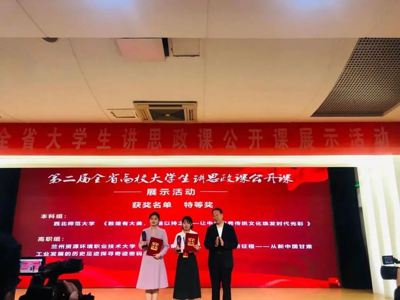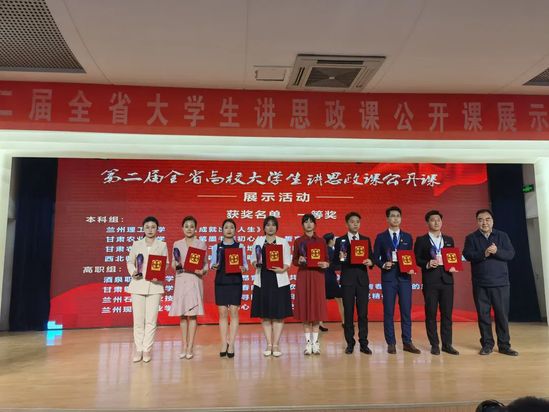 5月5日,由省委宣传部、省委教育工委主办,甘肃农业大学承办的第二届全省高校大学生讲思政课公开课展示活动总决赛在甘肃农业大学举办。活动共有60支本科和高职队伍入围,决赛评分采取百分制,专家组从教学设计、课堂教学等方面进行现场评分。经过激烈角逐,由德赢官网教师韩璐、毛娅楠、赫蓉指导,2020级研究生夏宇主讲的《敦煌有大美,自信以持之——让中华传统文化焕发时代光彩》荣获特等奖(第一名),由德赢官网教师郝相赟、高晓英、赫蓉指导,2021级研究生刘莹雪主讲的《奏响生态文明建设的时代强音——习近平生态文明思想的甘肃实践》荣获一等奖(第五名)。这是继德赢官网师生团队在第六届全国高校大学生讲思政课公开课展示活动中荣获二等奖后,再次荣获的省级竞赛殊荣。优异的成绩不仅体现了德赢官网始终聚力立德树人根本任务,扎实推动思政课建设所取得的成效,同时也彰显了西师学子良好的马克思主义理论素养和精神风貌。