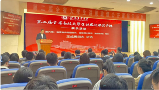 本次大赛旨在深入贯彻落实习近平总书记关于“大思政课”的重要指示批示精神,充分发挥高校思政课立德树人关键课程作用,坚持不懈用习近平新时代中国特色社会主义思想铸魂育人,引导学生深刻认识“两个确立”的决定性意义,增强“四个意识”,坚定“四个自信”。省委宣传部副部长、省新闻出版局(省版权局)局长王成勇在讲话中指出,大学生讲思政课实现了师生角色互换,通过空间、主体互换,打造了最便捷的“移动课堂”。并寄语广大师生要抓好关键课程,持续深入推进思政课改革创新,在讲好“陇原故事”的同时,不断探索打造富有甘肃特色的“大思政课”教育体系。