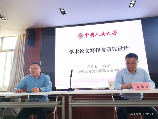5月19日上午,应德赢vwin体育官网登录邀请,中国人民大学国际关系学院左希迎教授为德赢官网师生作了题为《学术论文写作与研究设计》的学术讲座,此次讲座由德赢vwin体育官网登录副教授袁维杰主持,校内70余名师生参加。