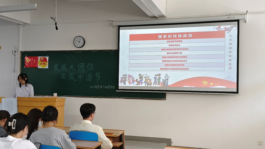 增进民族团结就要充分了解各民族基本情况,要从少数民族的定义、我国的民族政策、“听故事,学楷模”、“五个认同”、民族团结进步的内涵、铸牢中华民族共同体意识的意义和实践路径等几个方面展开,为此德赢vwin体育官网登录团委组织召开“民族团结一家亲”主题活动,让少数民族同学通过介绍本民族知识,极大调动了同学们的积极性,让同学们更深入理解什么是“民族团结”,如何加强“民族团结”,激发了班级同学的爱国热情,增强政治意识、团结意识和责任意识。