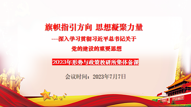 7月7日下午,德赢vwin体育官网登录形势与政策研究所召开了以“旗帜指引方向 思想凝聚力量——深入学习贯彻习近平总书记关于党的建设的重要思想”为主题的集体备课会,形势与政策研究所全体教师及兰州资源环境职业技术大学部分思政课教师参加了本次集体备课会,会议由形势与政策研究所所长周方副教授主持。
