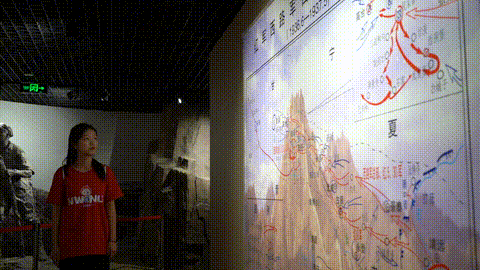 走进纪念馆,只见序厅中《壮怀千秋》声光四起,一幅幅油画描绘着凶猛激烈的战役场景,一座座雕像展示着战士们血气方刚、英勇无畏的冲锋姿态。低沉的钟声配合着讲解员的讲述让人身临其境,马嘶声、枪炮声犹如在耳。