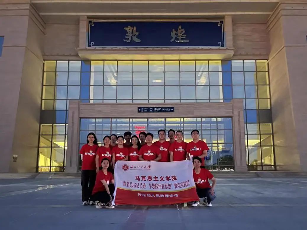 当前,全国上下正在深入开展习近平新时代中国特色社会主义思想主题教育。“跟着总书记足迹,学思践悟新思想”敦煌实践团队牢牢把握党的二十大精神,紧扣主题教育要求,将青春融入到祖国的大地中,将思政课描绘在祖国的山河里,脚踏实地,增长才干,在学思践悟中深刻领会习近平总书记平习近平新时代中国特色社会主义思想的精髓要义,在接续奋斗中践行“请党放心,强国有我”的铮铮誓言。