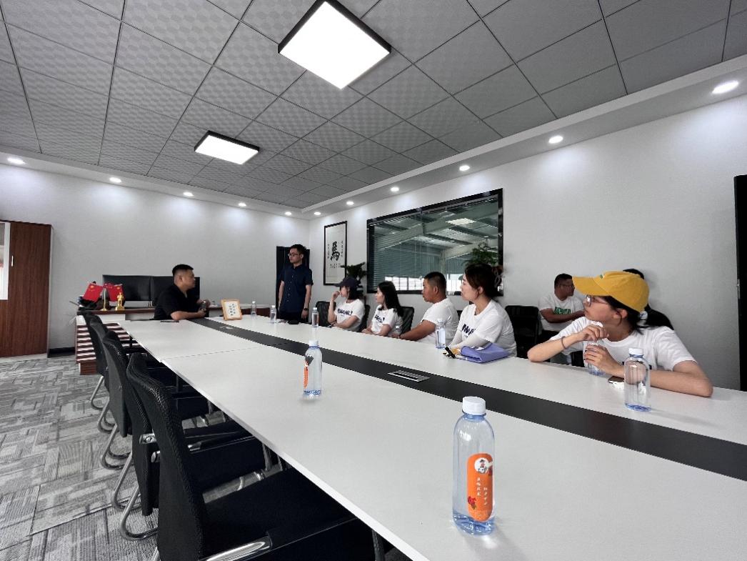 参观完整个生产链之后,公司负责人巩仕杰向实践团成员们讲述起了自己为助力家乡发展而返乡创业的故事。巩仕杰作为土生土长的甘谷人,曾在深圳打工十年,做过快递员、清洁工等多种工作。因为一个偶然的机会他被一家公司聘用,并通过自己认真负责的工作态度得到了老板的赏识,自此便开始接触进出口贸易工作。
