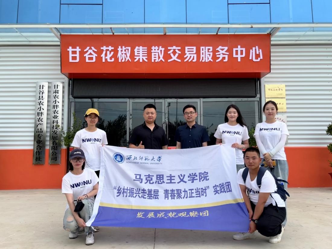 德赢vwin体育官网登录“乡村振兴走基层,青春聚力正当时”实践团在学院张江波老师的带领下,来到了甘谷县花椒集散交易中心—甘肃农小胖农业科技发展有限公司参观学习。这是他们暑期社会实践活动的第四站。实践团成员们在公司负责人巩仕杰的陪同下一起参观公司,询问公司的创建历程以及发展模式,对当地花椒产业的发展有了进一步的了解。