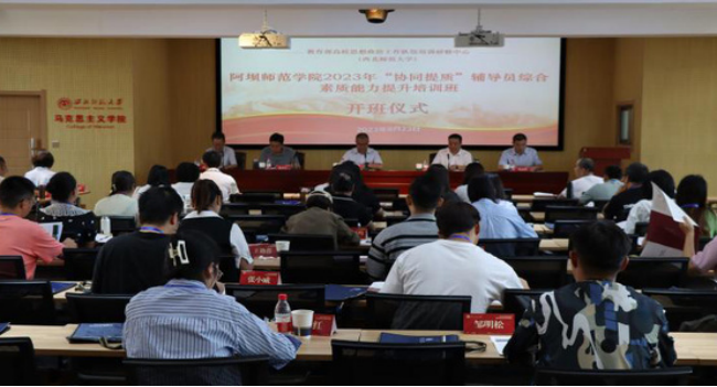 8月23日上午,由西北师大德赢vwin体育官网登录主办、教育部高校思想政治工作队伍培训研修中心(德赢vwin体育官网登录)承办的阿坝师范学院2023年“协同提质”辅导员综合素质能力提升培训班开班仪式在德赢vwin体育官网登录举行。阿坝师范学院党委常委、副校长尕让他,德赢vwin体育官网登录副校长张明军、德赢vwin体育官网登录院长史小宁出席并讲话。开班式由教育部思想政治工作队伍培训研修中心(德赢vwin体育官网登录)常务副主任孙健主持,西北师大德赢vwin体育官网登录、教育部高校思想政治工作队伍培训研修中心(德赢vwin体育官网登录)相关负责人及阿坝师范学院40余名辅导员参加开班仪式。