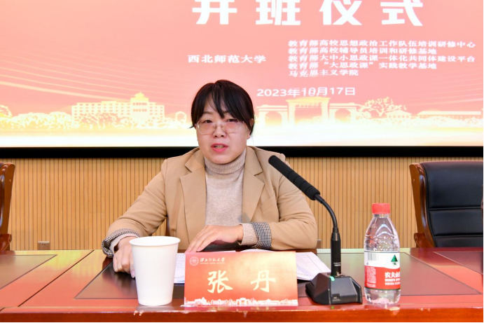 甘肃省教育厅思想政治工作处副处长张丹从辅导员的身份认知、能力建设以及培训纪律要求三个方面作了动员讲话。她表示,高校辅导员承担着立德树人的使命,身处思想政治工作最前沿、第一线,是开展大学生思想政治教育的骨干力量,是高校学生日常思想政治教育和管理工作的组织者、实施者和指导者,是大学生人生导师和健康成长的知心朋友。因此,要在思想上做到“又红又专”,强化自身政治意识与道德建设;在能力上做到“又专又精”,努力提升辅导员所需各项技能;珍惜培训机会、遵守培训纪律,勇于探索实践。