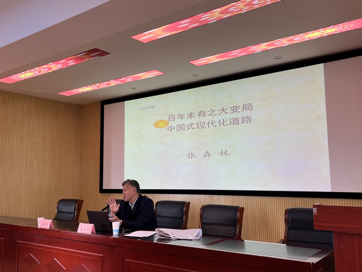 10月20日上午,应德赢vwin体育官网登录邀请,东北师范大学张森林教授在田家炳教学楼6楼学术报告厅为德赢官网师生作了题为《百年未有之大变局与中国式现代化道路》的学术讲座。本次讲座由德赢vwin体育官网登录马乔恩副院长主持。