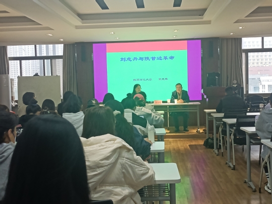 讲座伊始,黄正林教授指出了刘志丹在中共党史上的地位和研究刘志丹的学术意义,再根据刘志丹早期经历,讲述刘志丹于1921年考入榆林中学后开始信仰马克思主义,并积极参与革命活动,以及刘志丹进入黄埔军校学习后成为了一名坚定的革命者,此后参与并领导了渭华起义的经历与过程。讲座中,黄教授与在座师生探讨了刘志丹与陕甘边革命等问题,认为刘志丹在领导陕甘边根据地的各项建设中,坚持实事求是的思想路线,为创建陕甘边根据地和西北红军作出了不可磨灭的历史贡献。