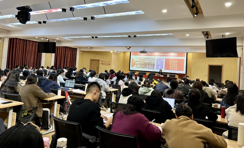 李晓霞老师作了题为《以党的自我革命引领新的赶考之路——党内集中教育的视角》的报告。李晓霞老师首先阐述了马克思、恩格斯、列宁关于加强科学理论武装的思想与实践,以此来阐释党内集中教育的理论渊源;接着以时间线的方式梳理了党内集中教育的历史发展脉络;然后简明扼要地阐述了党内集中教育的历史演进特征和基本历史经验并总结出了新时代党内集中教育创新发展的五个主要路径。在讲座最后,李晓霞老师着重强调了全面建设社会主义国家关键在党,全面从严治党永远在路上。