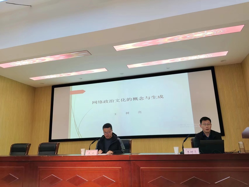 王树亮副教授作了题为《网络政治文化的概念与生成》的报告。王老师首先从国内外学者对政治文化概念的定义出发,引申到对网络政治文化概念的界定。在此基础上,王老师对网络政治文化形成的内因、外因的逻辑线索进行了梳理。最后,王老师对网络政治文化的生成内涵和发展体系作了总结。