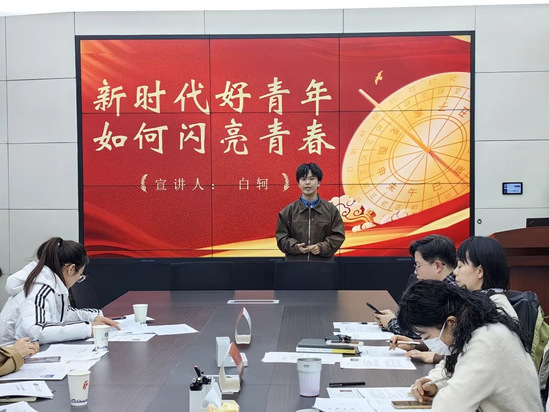 活动第一项,曹国强同学对新时代大学生理论宣讲团成立的历史背景和近年来取得的成就进行了回顾,并详细介绍了此次活动的评选标准,阐明了新时代大学生理论宣讲团设置的岗位及其相应的职责。