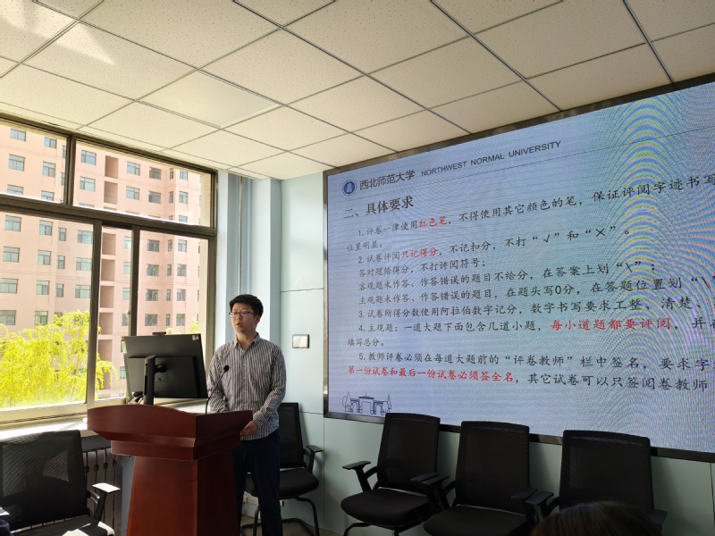 会议第三阶段,折祎老师为新入职教师讲解《德赢vwin体育官网登录思想政治理论课试卷评阅要求》,助力新入职教师不断增强阅卷规范性,提高课程考核质量,为加强教学质量监控,奠定了坚实基础。马克思主义中国化研究所将继续加大教学质量监控力度,积极开展集体备课会,深入开展听评课,确保课程达到高标准的教学质量要求,为培养更多优秀人才提供有力保障。