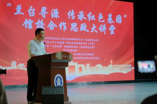 甘肃省档案馆副馆长李海洋与教育部德赢vwin体育官网登录高等教育发展及华夏文明展示博物馆特色科普基地常务副主任马俊峰教授共同为“大思政课”实践教学基地授牌。