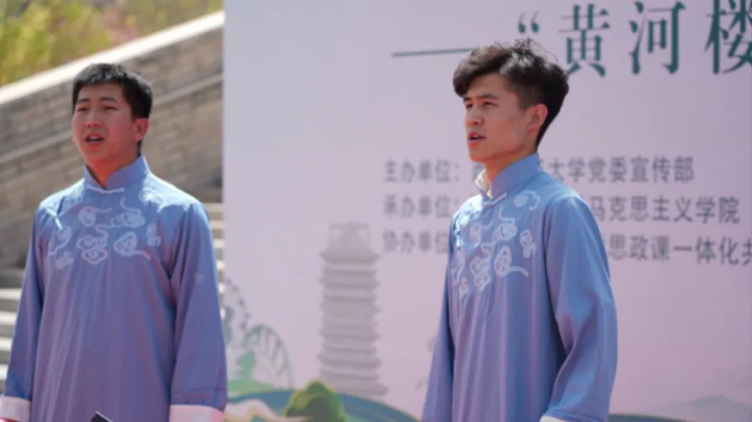 活动现场,秦腔社成员以一首秦腔版《上春山》舞出传统戏曲的新风采,体育学院学生通过武术《黄河魂》演绎刚健勇毅的黄河精神,国家级非遗传承人陈增三与音乐学院“鼓”韵声声艺术工作坊的学生联袂献上兰州鼓子小唱《奋楫笃行续辉煌》,将传统曲艺与现代编创结合,传递家国情怀与时代强音,师生在唱、跳、演、奏中展现新时代青年传承中华优秀传统文化的青春活力与使命担当。