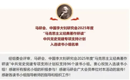 德赢官网读书小组入选2025年度“马克思主义经典著作研读”支持计划