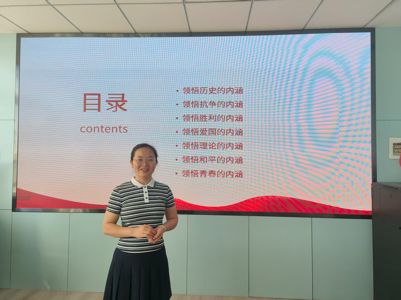 王晓云副教授从领悟历史的内涵、抗争的内涵、胜利的内涵、爱国的内涵、理论的内涵、和平的内涵、青春的内涵等“七个维度”切入,领学了习近平总书记在纪念中国人民抗日战争暨世界反法西斯战争胜利80周年大会上的重要讲话,并重点研学了“伟大抗战精神”“和平发展观”。